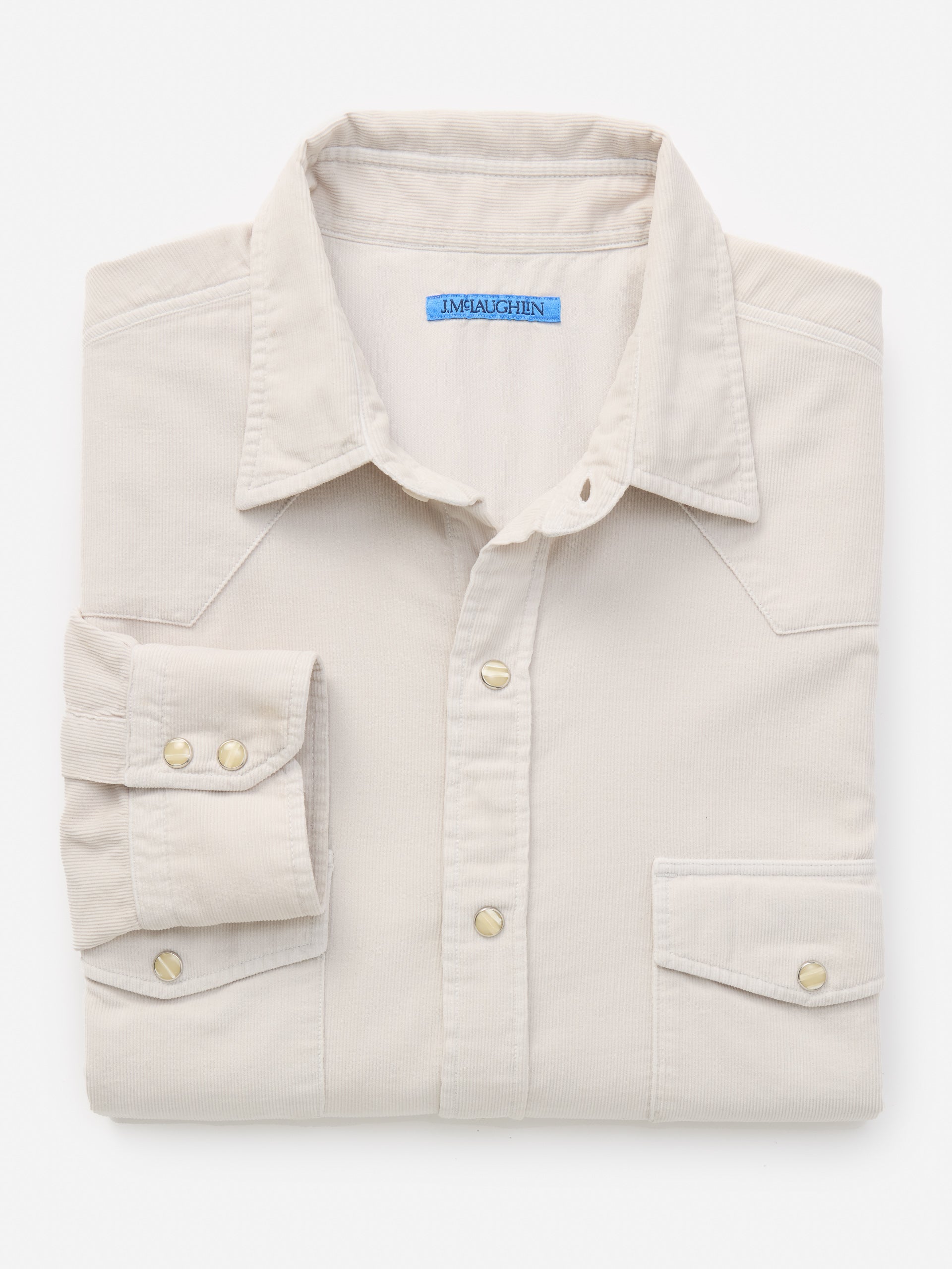 J. McLaughlin’s take on an American classic, our updated western shirt is cut from a luxuriously soft cotton pincord. Classic Fit.