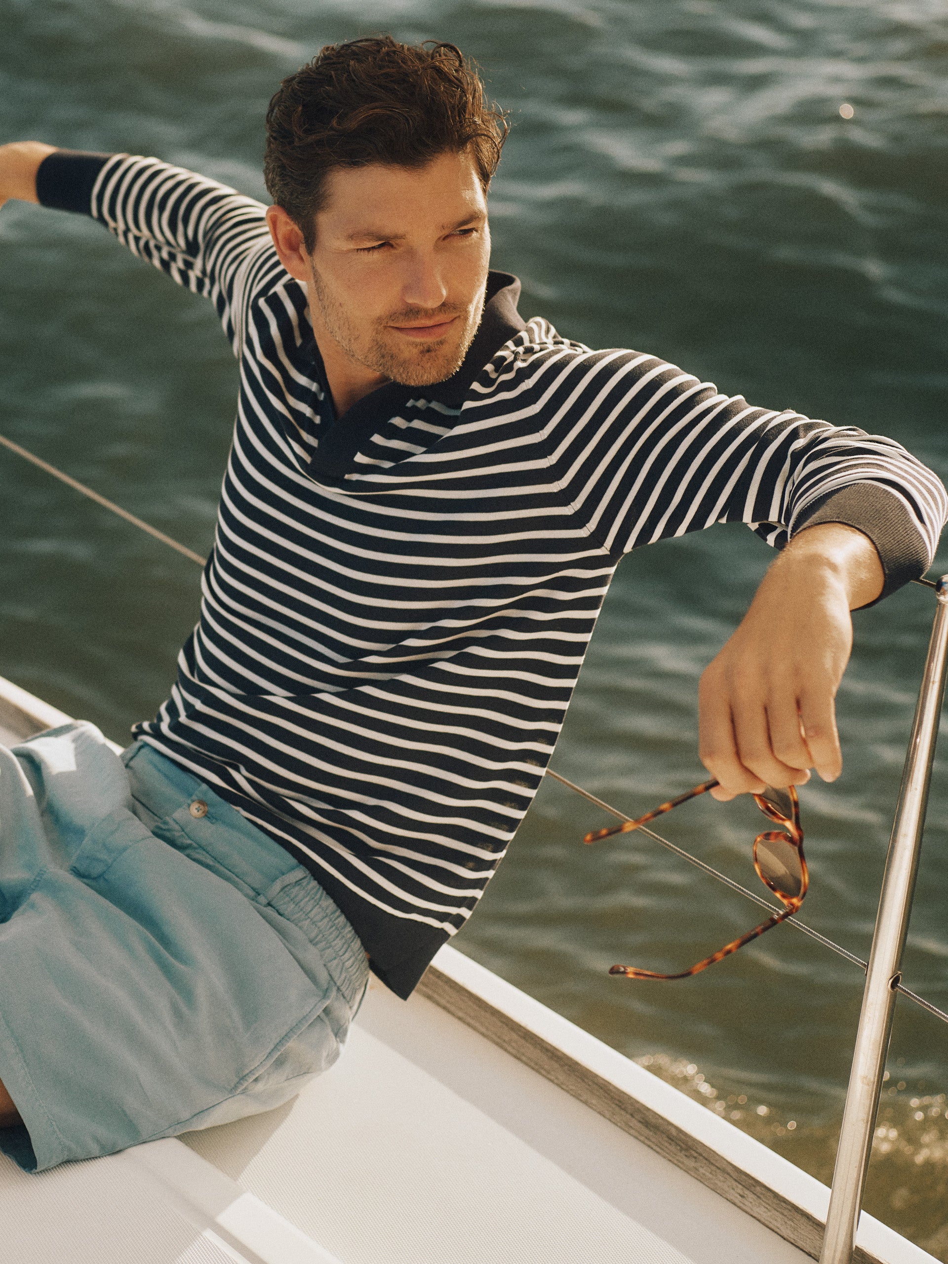 Our buttonless polo sweater returns in a breathable mercerized cotton- a process that improves dye uptake and lends the garment an almost silk-like hand feel. Made to be dressed up with a sport jacket or simply worn on it’s own.