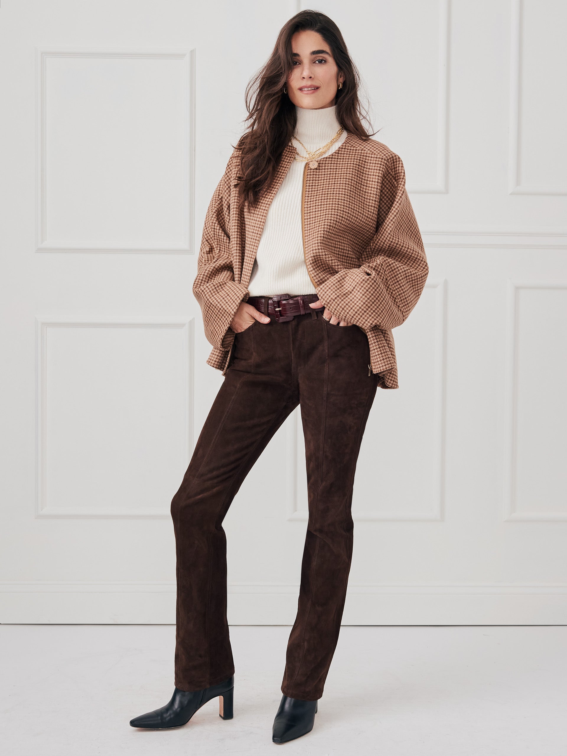 Long sleeves Turtleneck Ribbed 100% Cashmere Dry clean only. Imported. Size & FitRelaxed fit 22″ long from top of center back (size M) Gabby is 5′ 9.5″ and wearing a size XS.