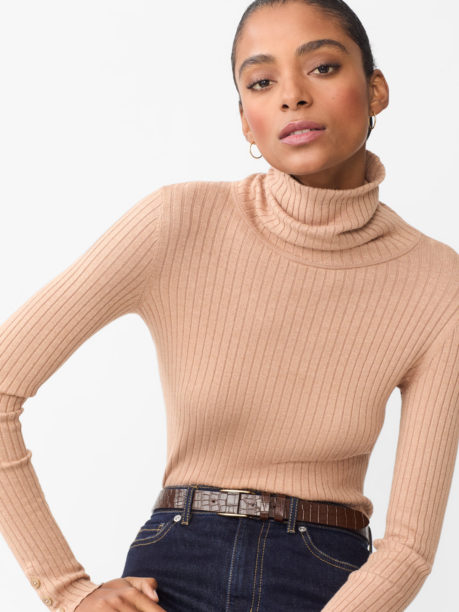 Long Sleeve Turtleneck Buttons at cuff Stretch/Ribbed 54% Cotton, 44% Modal, 2% Spandex Hand wash cold. Lay flat to dry. Imported. Size & Fit 24.5″ long from top of center back (size M) Model is 5’9″ and wearing size XS