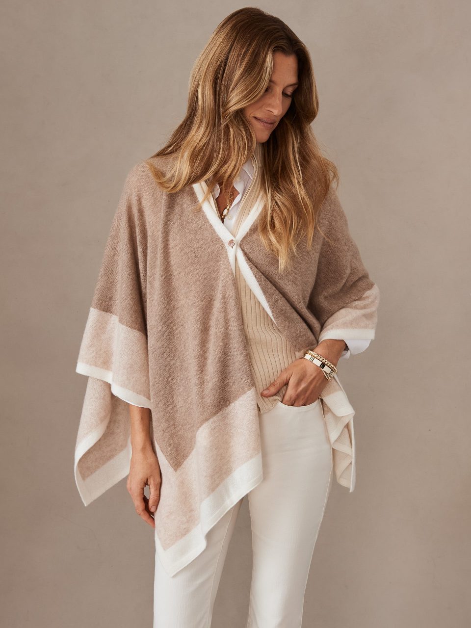 Full zip poncho Kimono sleeves 60% Wool, 17% Polyamide, 23% Viscose Dry clean only. Imported. Size & Fit25.5″ L, 48″ W