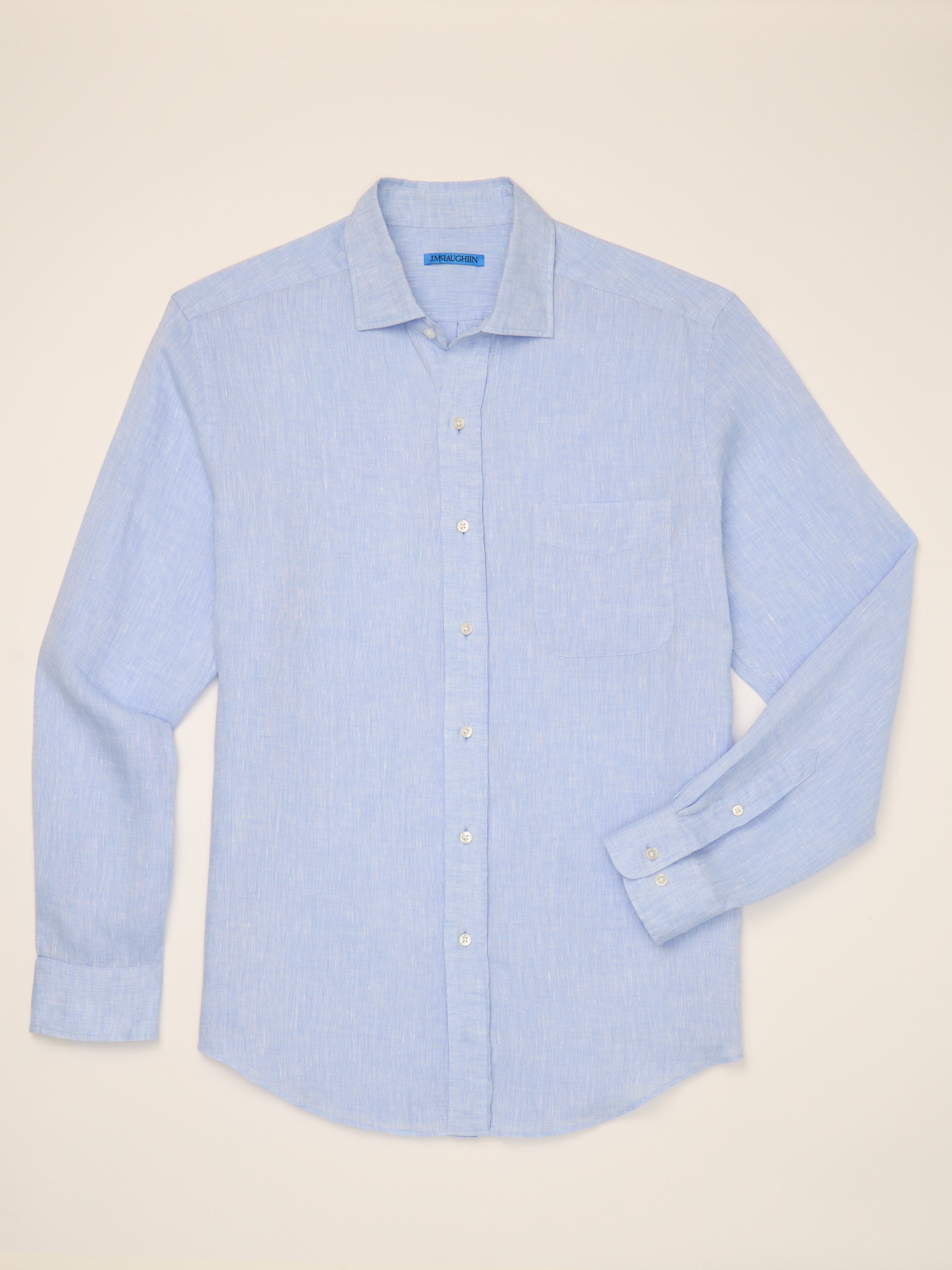 Mens Long sleeve Soft point collar Front pocket Classic fit 100% Linen Machine wash cold. Lay flat to dry. Imported. Size & Fit Classic fit 31″ long from top of center back