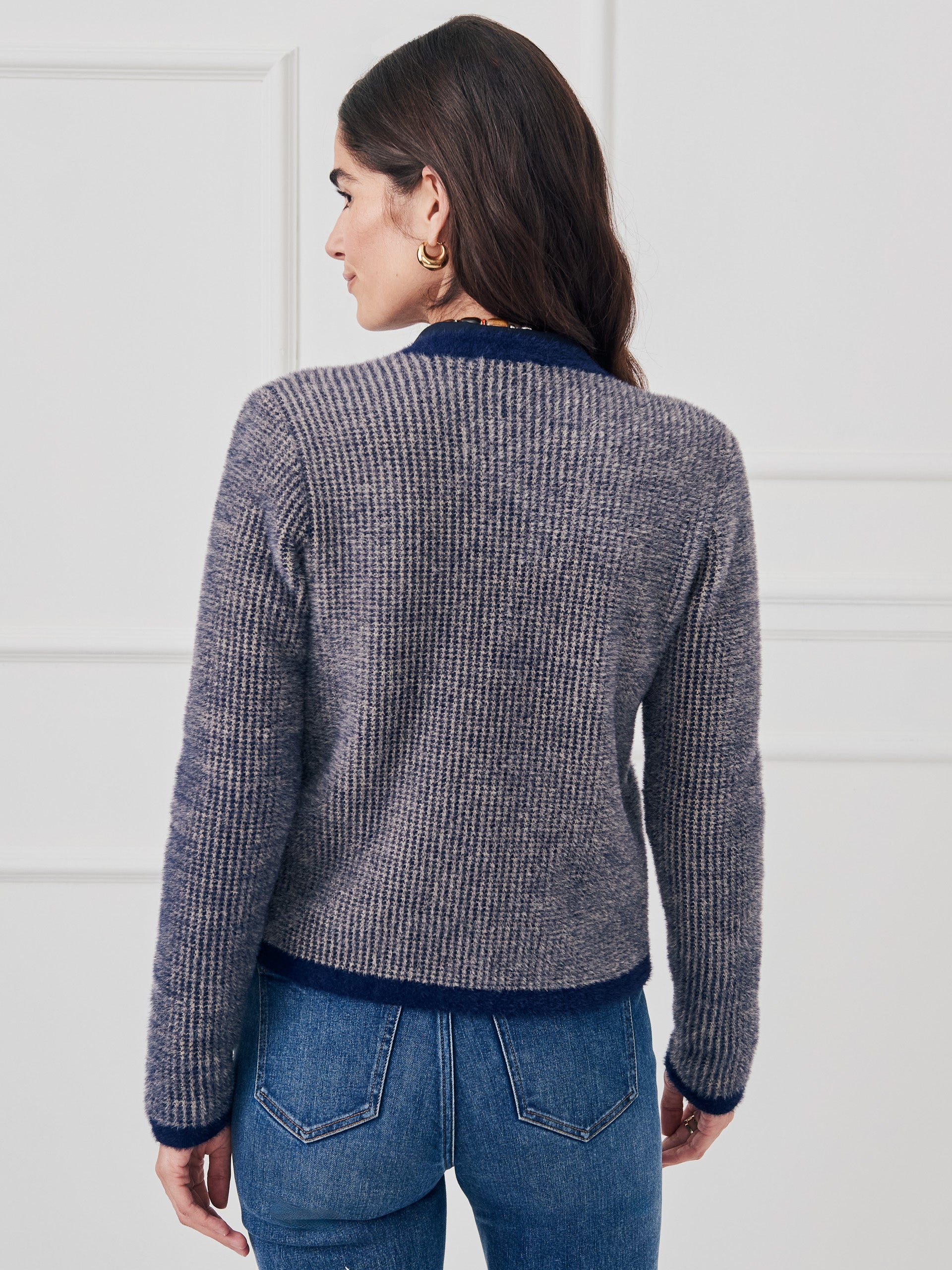 We’ve taken the classic cardigan and elevated it with special details, from the herringbone pattern, to the soft eyelash knit, to the gold tone crest buttons. It’s a must-have piece that goes everywhere, beautifully.