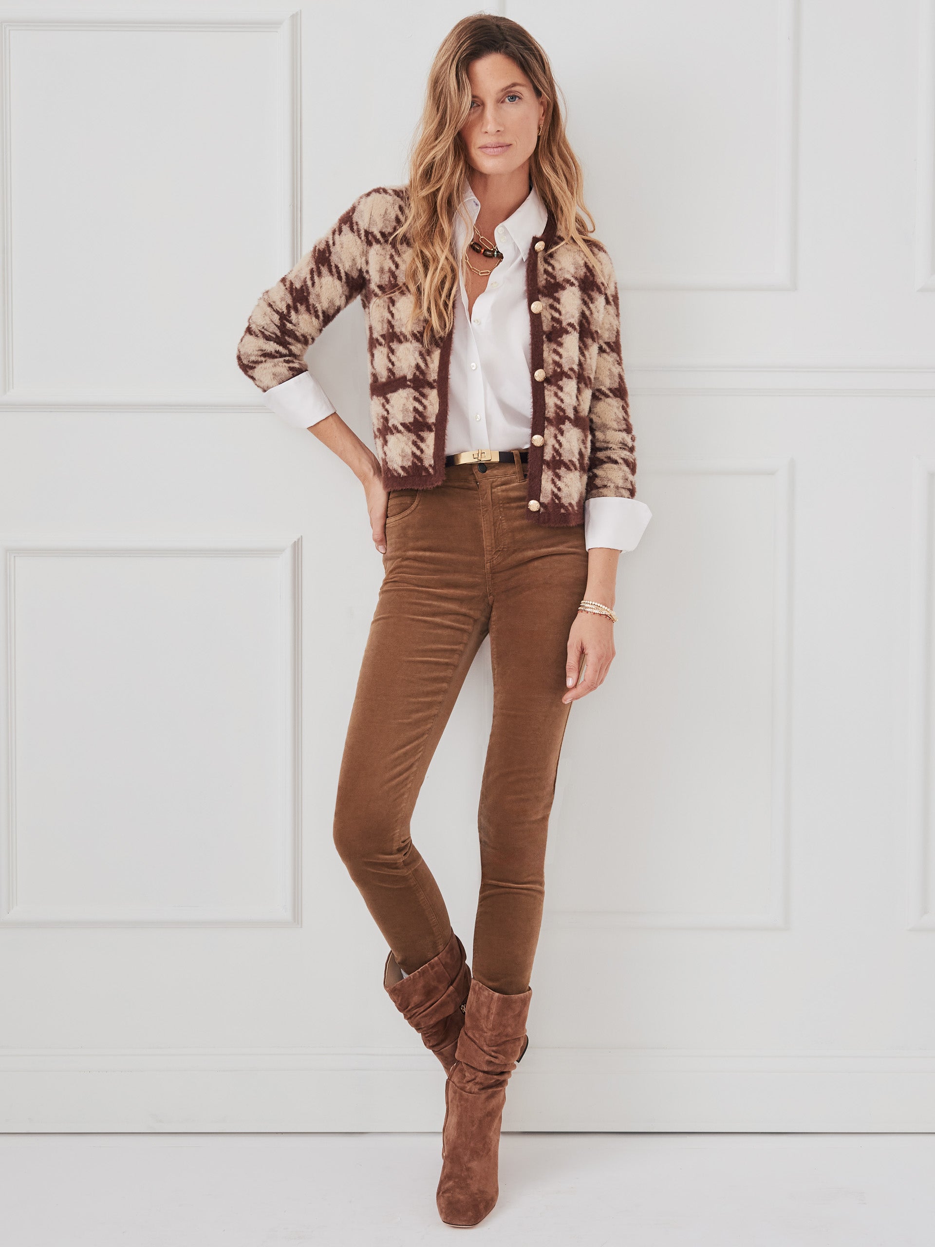 We’ve taken the classic cardigan and elevated it with special details, from the herringbone pattern, to the soft eyelash knit, to the gold tone crest buttons. It’s a must-have piece that goes everywhere, beautifully.