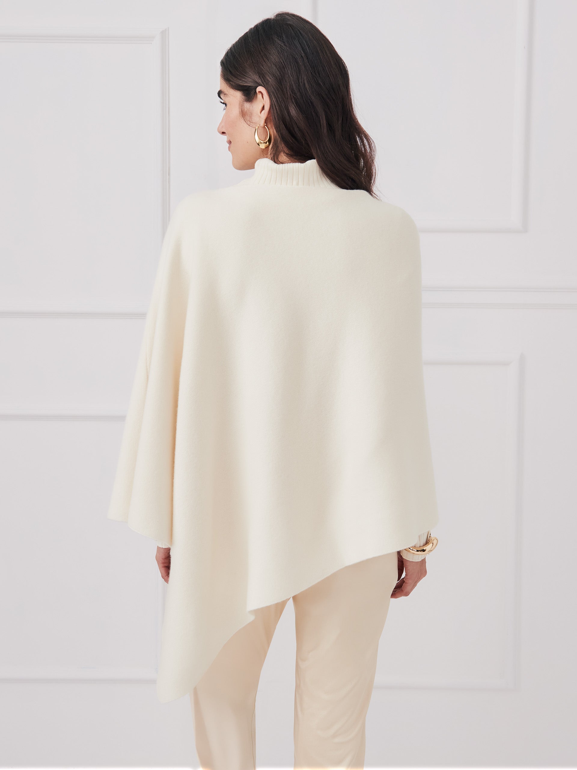 Crafted in a thick & soft cashmere/wool blend, our asymmetrical poncho acts as the perfect top layer for chilly fall days ahead.