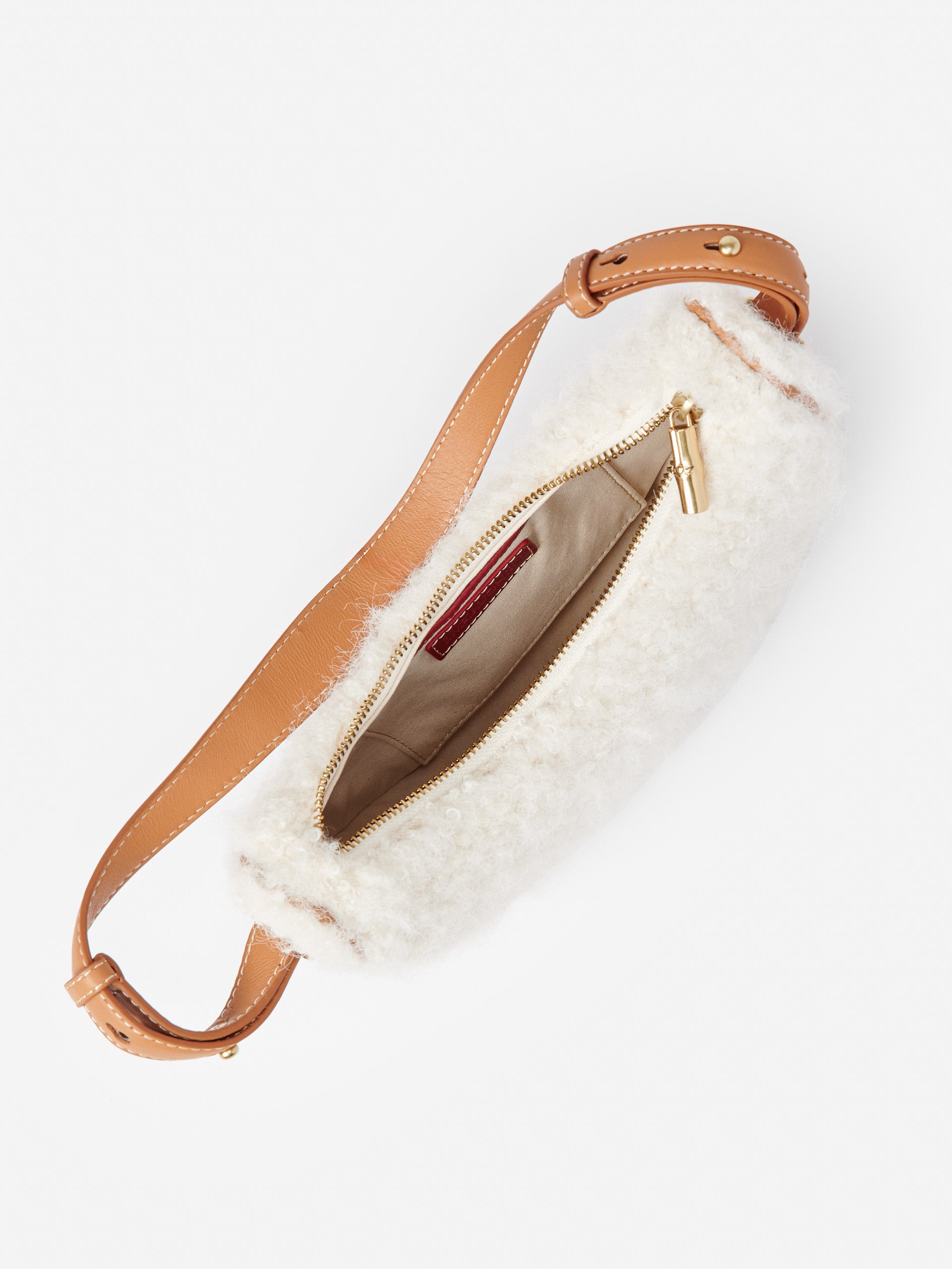 In a distinctive crescent shape, the Mezzaluna handbag fits perfectly on your shoulder, or you can wear it as a crossbody with the removable strap. Stash your wallet, phone, and keys and be stylishly out the door.